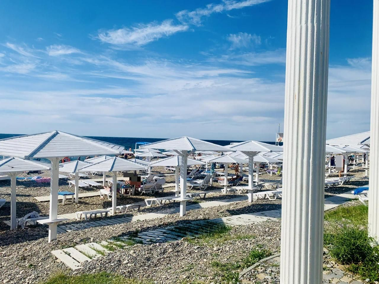 В 50 метрах — море и оборудованный шезлонгами пляж.